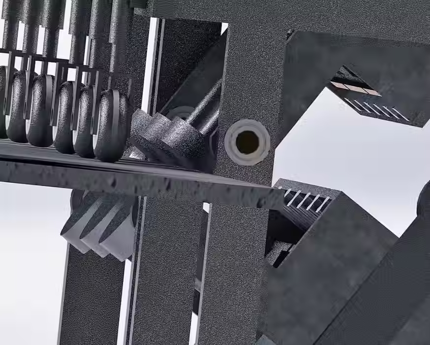 Phase 5: Fabrication & Assembly – Machined structural and kinematic components on VMCs, applied GD&T for interchangeability, and integrated pneumatic jacks and proximity sensors for automated in‑feed control. Field assembly by technicians resulted in a fully operational system at roughly one‑tenth the cost of a comparable Chinese import.