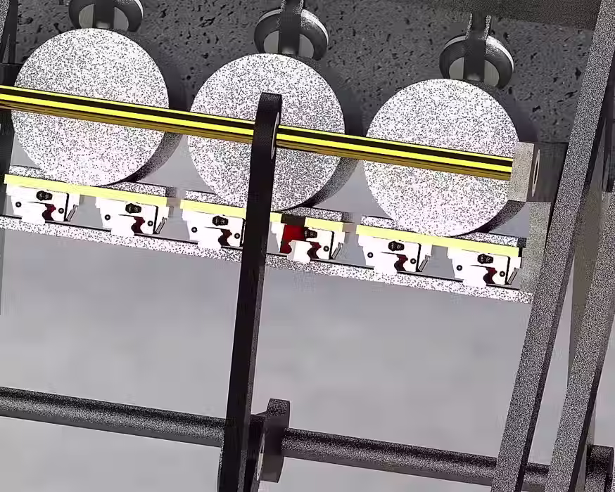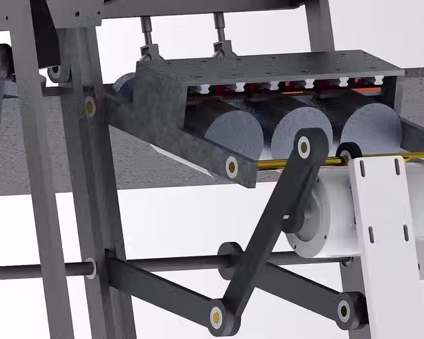 Phase 4: Kinematic Design – Derived linkage lengths and cam profiles to maintain synchronous motion and uniform contact pressure across variable slab geometries, using SolidWorks motion studies and Fusion 360 validation loops.