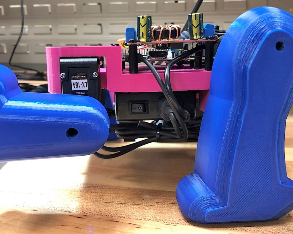 Develop an autonomous, organically styled quadruped robot—modelled on triceratops morphology—that traverses 30 % of its body length per gait cycle.