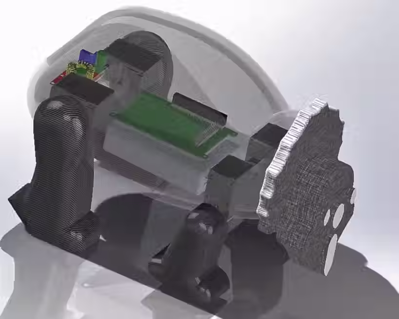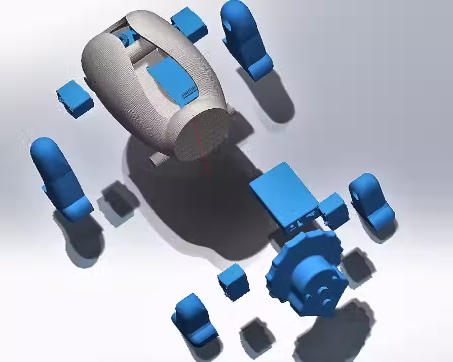Phase 2: Lattice & CAD Optimisation – Employed Altair lattice optimisation to minimise mass yet maximise stiffness, then completed a full SolidWorks assembly that included motor mounts, cable routing, and sensor recesses. Gait kinematics and ABS stress fields were validated in simulation, confirming a target stride of 0.3 L cycle⁻¹ without yielding.